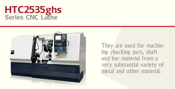 With “HTC2535ghs” horizontal turning cemter, turning, milling and drilling work can be executed in one set up due to modular extension of up to 3 CNC axes (X, Z, C1 or X, W, C2). They are used for machining chucking part, shaft and bar material from a very substantial variety of metal and other material. Thanks to optimum arrangement and configuration of main spindle, bed, slide, and 2nd spindle, the high rigidity can be achieved. The machining accuracy is up to Ra0.4μm (mon-ferrous metal ) and Ra0.8μm (ferrous metal).